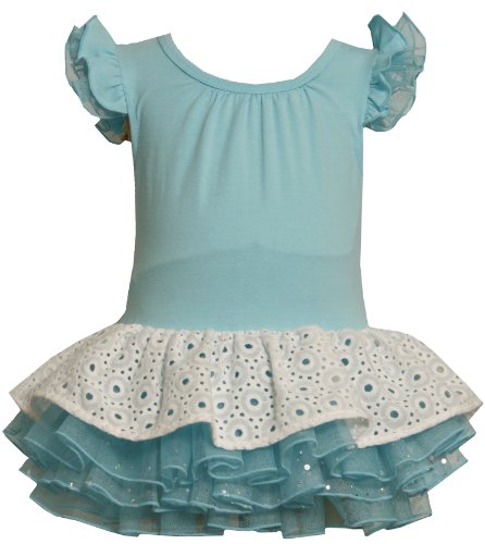 Bonnie Baby Girls Infant Knit Bodice To Drop Waist Eyelet Tier On Skirt, Aqua, 24 Months Review