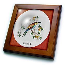 Bee Eater Framed Tile is measuring 8w x 8h x .75d. Made of solid wood with predrilled keyhole for easy wall mounting. Framed tile comes with 6w x 6h ceramic gloss tile attached to the wood frame.