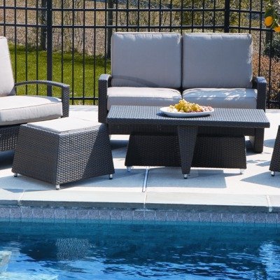 Vento 3 in 1 Coffee Table Set Features: -Contains coffee table with glass top and pull out ottomans. Options: -Cushion is available in Spectrum Dijon, Dupione Sand or Chenillia Brick fabrics. Collection: -Vento collection.