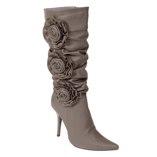 These pointed toe stiletto boots from Liliana by Adi blossom with rosette accents. A slouchy upper and crinkle texture add chic detailing. All measurements are approximate and were taken using a size 6. Please note measurements may vary slightly by size.