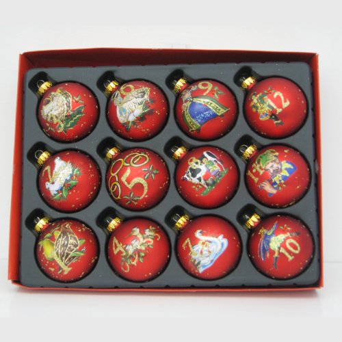 Set of 12 Twelve Days of Christmas Glass Ball Ornaments 2.5" (60mm) Review